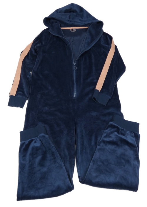 Tmavomodro-růžová plyšová kombinéza s pruhy a kapucí M&S