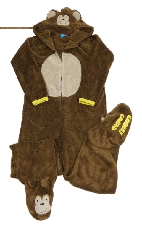 Hnědá plyšová kombinéza s kapucí - opička Primark