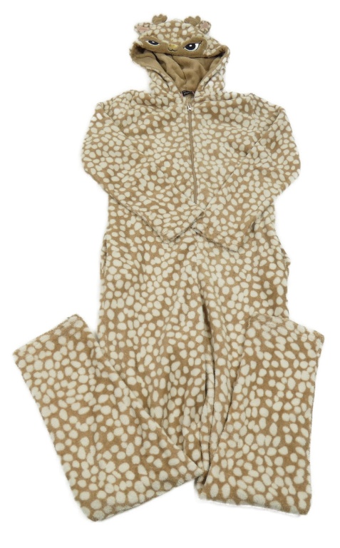 Hnědo-smetanová vzorovaná plyšová kombinéza s kapucí - sob