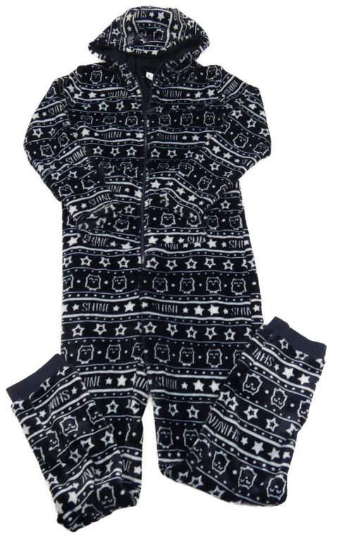 Tmavomodro-bílá vzorovaná plyšová kombinéza s kapucí Yigga