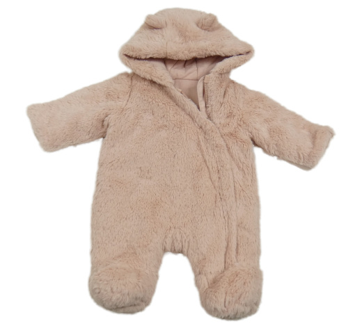 Starorůžová kožešinová zateplená kombinéza s kapucí s oušky Tu