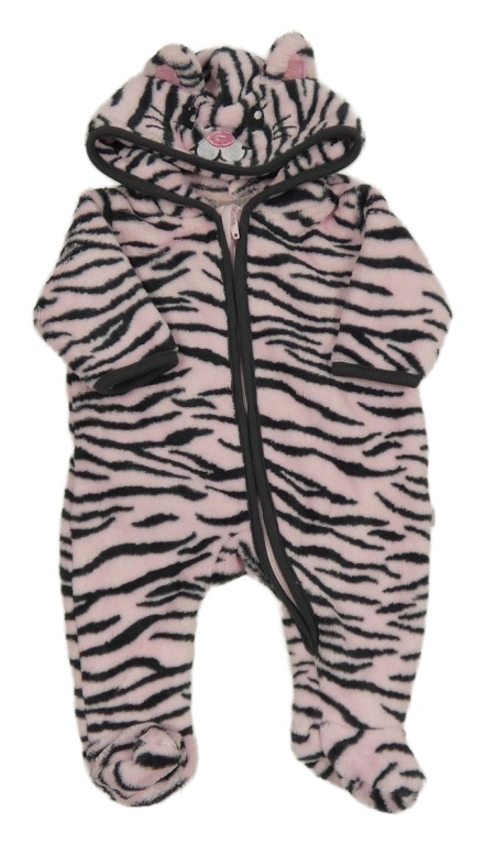 Světlerůžovo-šedá vzorovaná chlupatá kombinéza s kapucí Smile