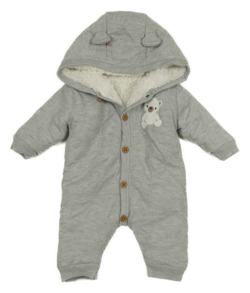 • Šedá melírovaná úpletová zateplená kombinéza s medvídkem a kapucí s oušky little Nutmeg