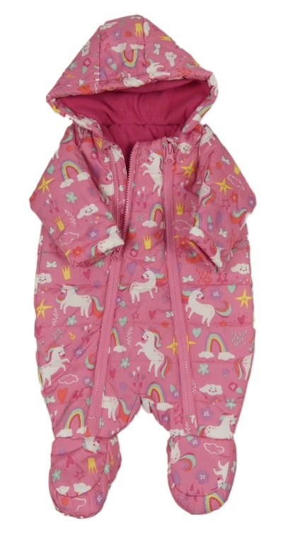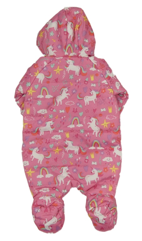 Růžová šusťáková zateplená kombinéza s jednorožci a kapucí St. Bernard