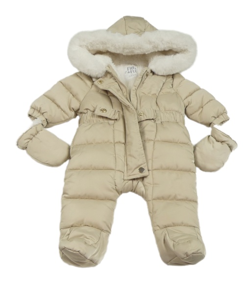 Béžová šusťáková zimní kombinéza s kapucí + rukavice F&F