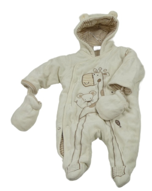 • Smetanová sametová zateplená kombinéza se zvířátky a kapucí + rukavice