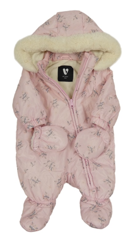 • Světlerůžová šusťáková zimní kombinéza s kytičkami a kapucí + rukavice V by Very