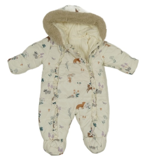 Smetanová šusťáková zimní kombinéza se zvířátky a kapucí George