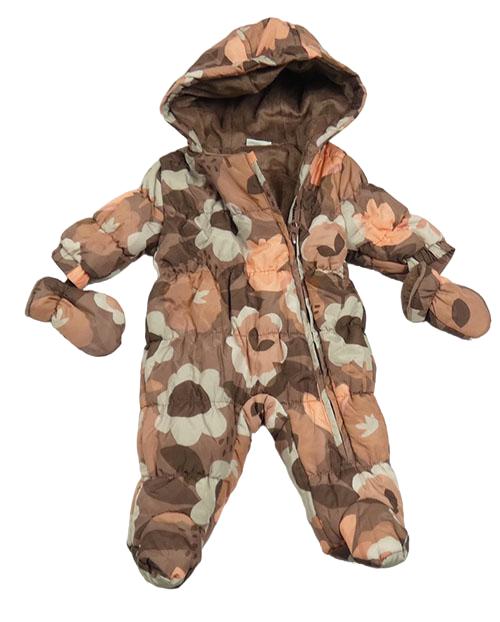 Hnědá květovaná šusťáková zateplená kombinéza s kapucí + rukavice Next
