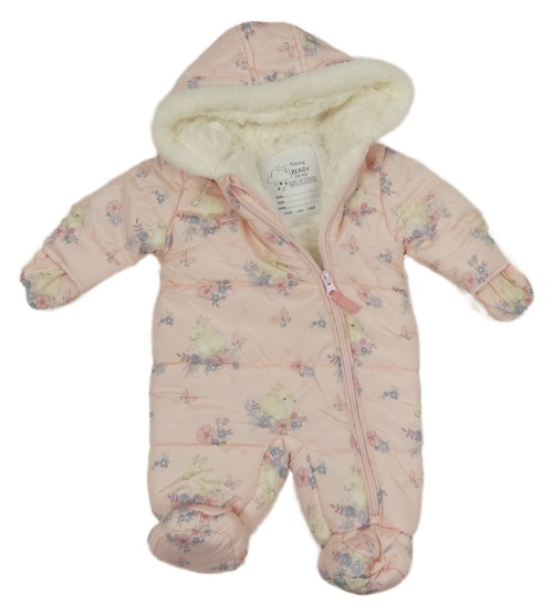 Světlerůžová šusťáková zimní kombinéza s králíky a kapucí Nutmeg