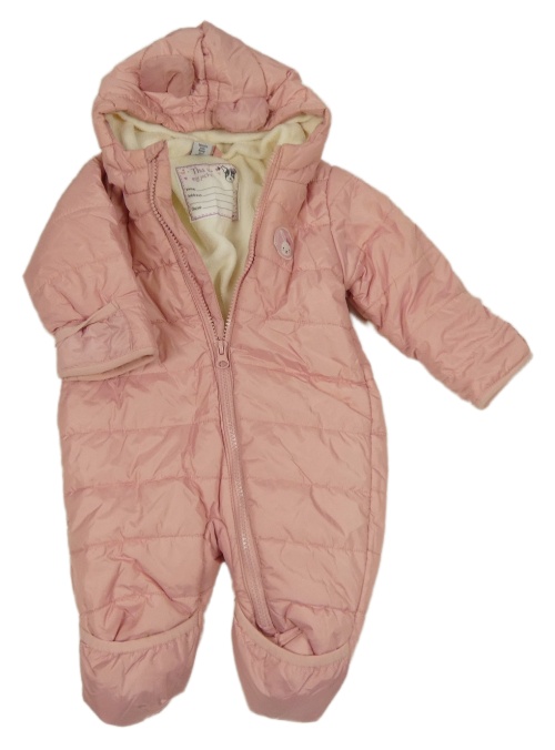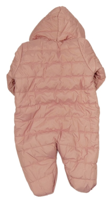 Růžová šusťáková prošívaná zimní kombinéza s kapucí