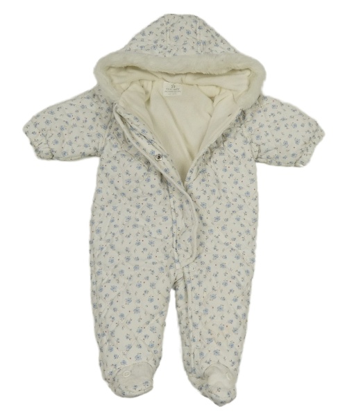 Bílá květovaná šusťáková zimní kombinéza s kapucí s kožešinou Next