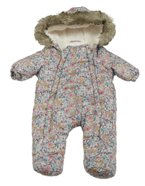• Světlešedá melírovaná květovaná šusťáková zimní kombinéza s kapucí s kožešinou F&F