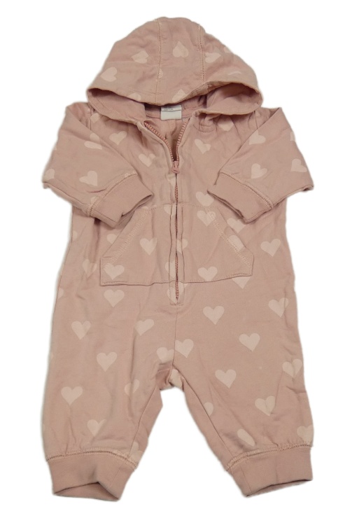 Světlerůžová tepláková kombiéza se srdíčky a kapucí H&M
