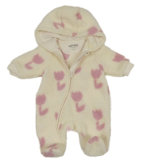 Bílo-růžová huňatá kombinéza s kytičkami a kapucí John Lewis