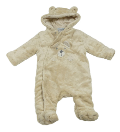 • Béžová chlupatá zateplená kombinéza s čumákem a kapucí Topomini