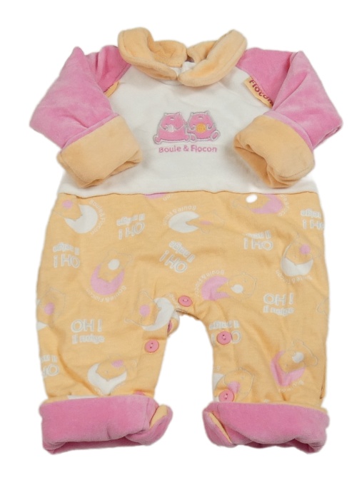 • Světleoranžovo-bílo-růžová bavlněno/sametová zateplená kombinéza s medvídky a límečkem Flocon