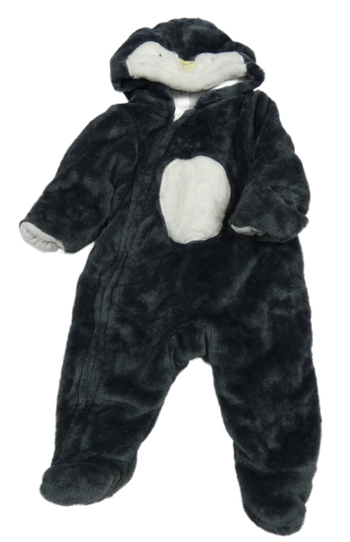 • Antracitovo-bílá chlupatá zateplená kombinéza s kapucí - tučňák C&A