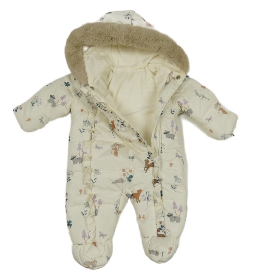 • Smetanová šusťáková zimní kombinéza se zvířátky a kapucí s kožešinou George