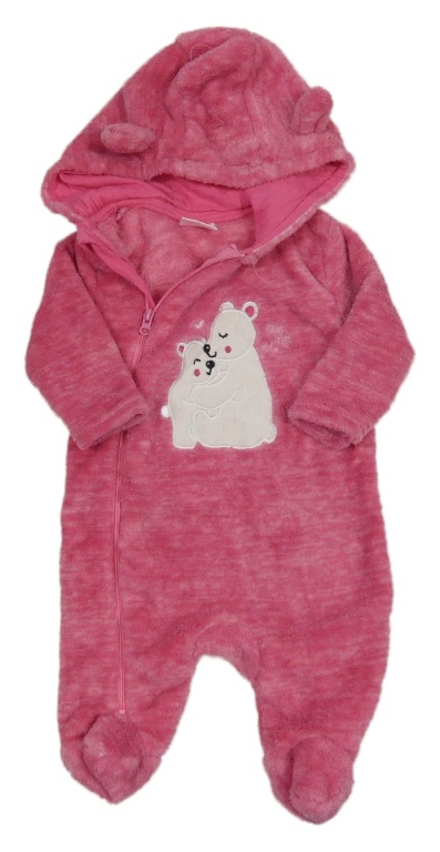 Tmavorůžová melírovaná chlupatá kombinéza s medvědy a kapucí Orsolino