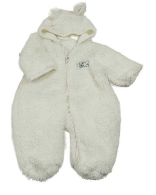 • Bílá huňatá podšitá kombinéza s medvídkem a kapucí s oušky