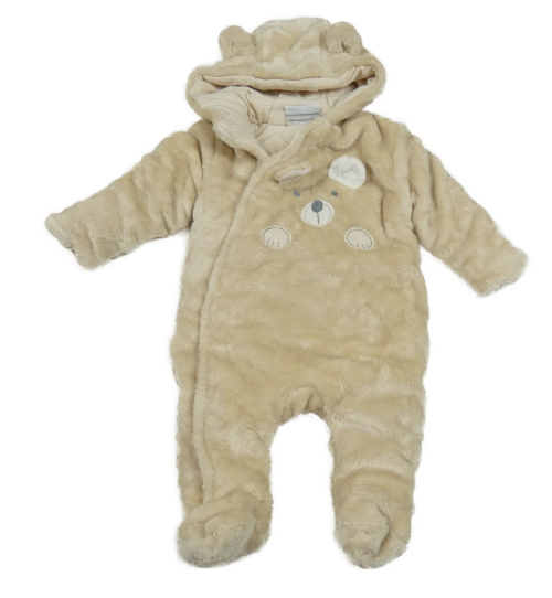 • Béžová plyšová zateplená kombinéza s medvídkem a kapucí s oušky Topomini