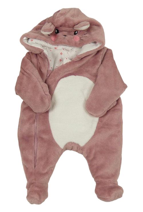 Starorůžovo-bílá chlupatá zateplená kombinéza s kapucí s čumákem M&Co.