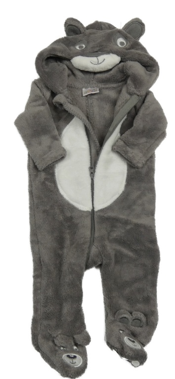 • Tmavošedo-bílá plyšová kombinéza s kapucí - medvídek orsolino