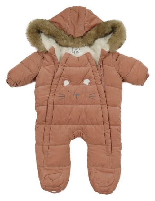 Starorůžová manšestrová zateplená kombinéza s čumákem a kapucí F&F