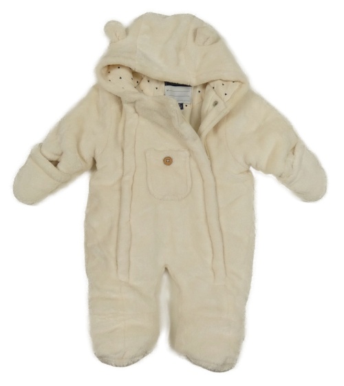 Smetanová plyšová zateplená kombinéza s kapucí s oušky KIABI