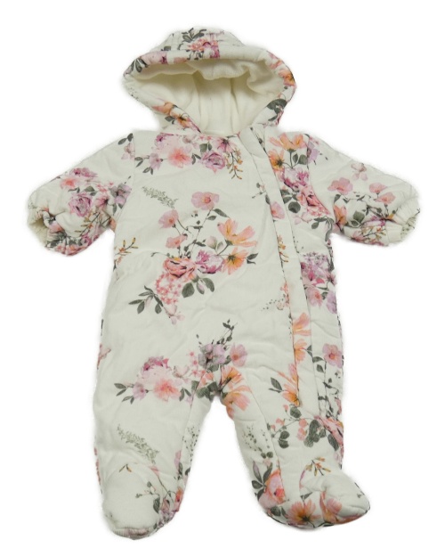 Bílá květovaná manšestrová zateplená kombinéza s kapucí Next