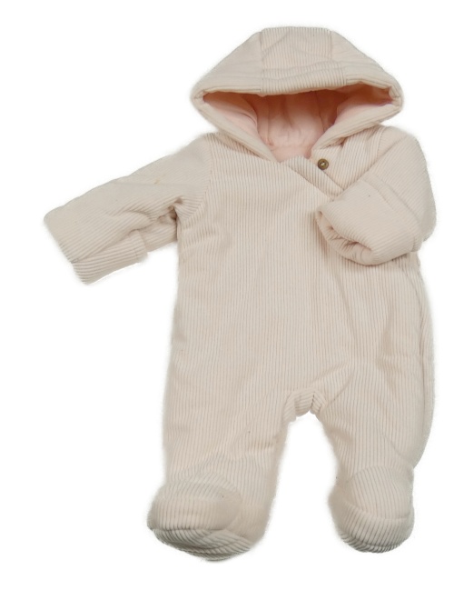 Světlerůžová sametová žebrovaná zateplená kombinéza s kapucí Tu