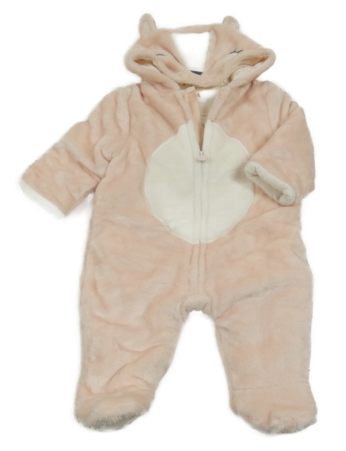 Růžovo-bílá chlupatá zateplená kombinéza s kapucí - liška C&A