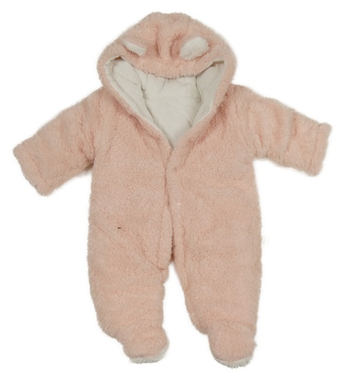 Světlerůžová chlupatá zateplená kombinéza s kapucí