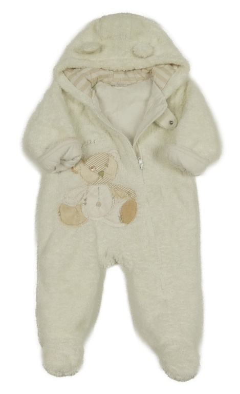 • Smetanová plyšová zarteplená kombinéza s medvídkem a kapucí Next
