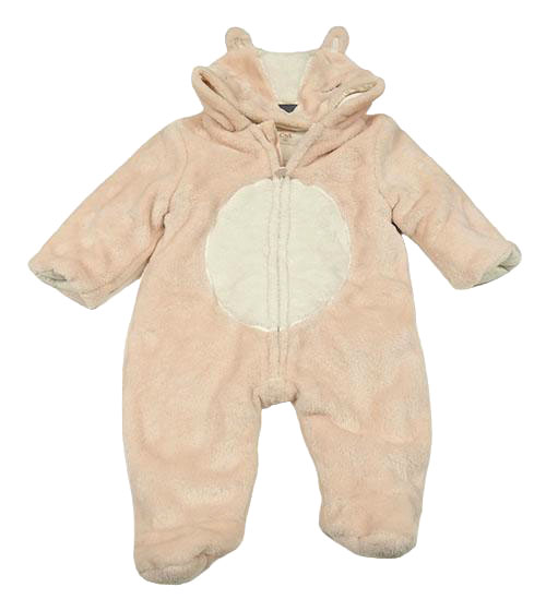 Růžovo-smetanová chlupatá zateplená kombinéza s kapucí - liška C&A