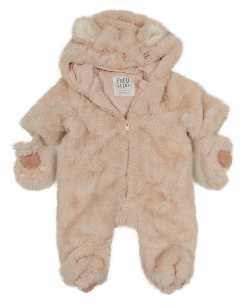 Růžová kožešinová zateplená kombinéza s kapucí + rukavice F&F