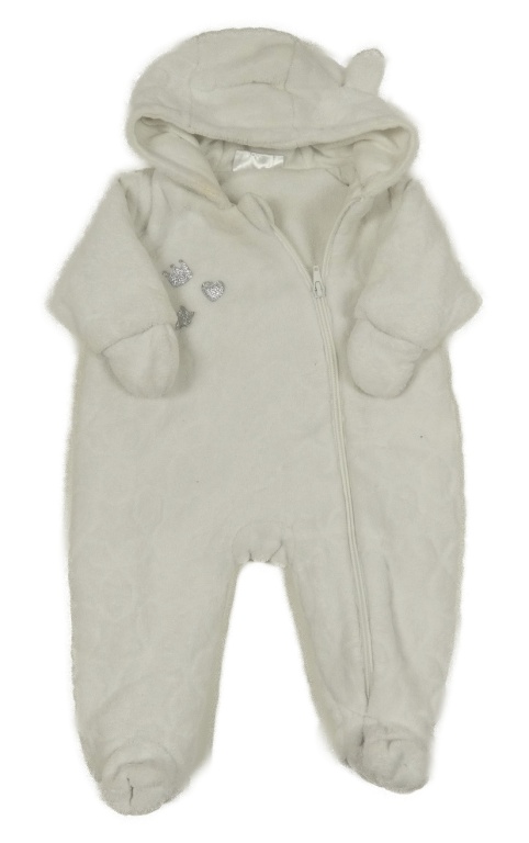 Smetanová plyšová zateplená kombinéza s nášivkami a kapucí + rukavice Ergee