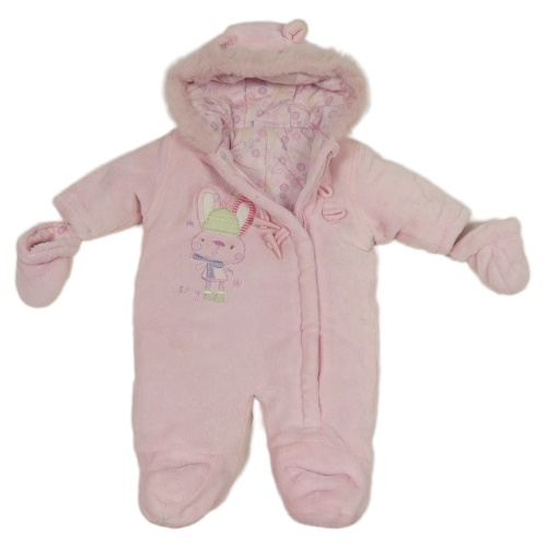 Růžová chlupatá zateplená kombinéza s králíkem a kapucí + rukavice