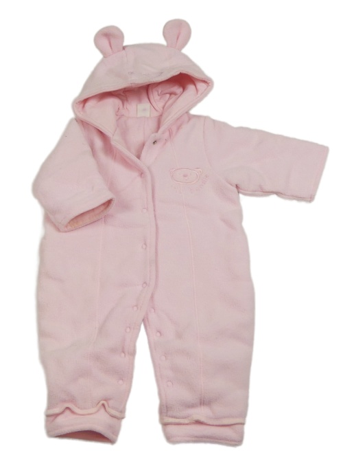 Světlerůžová fleecová zateplená kombinéza s medvědem a kapucí Little Bundle