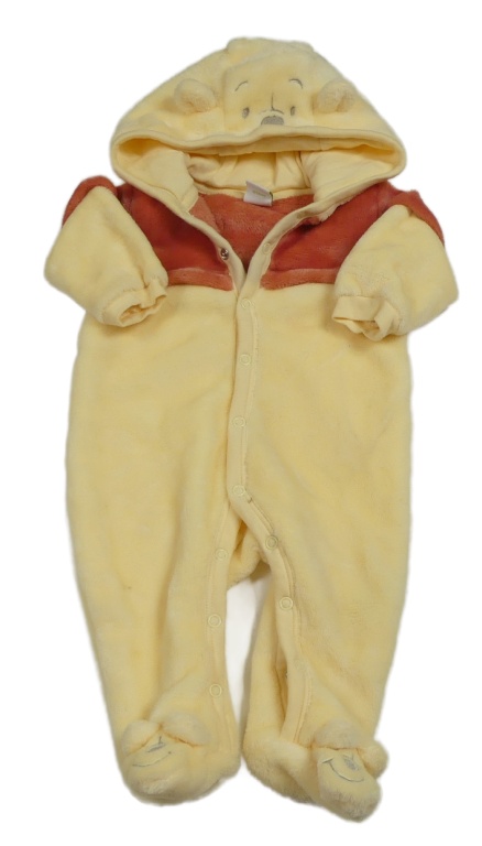 • Žluto-oranžová chlupatá kombinéza s kapucí-medvídkem Pú Disney