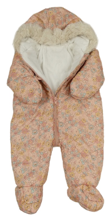 Růžová květovaná šusťáková zimní kombinéza s kapucí George