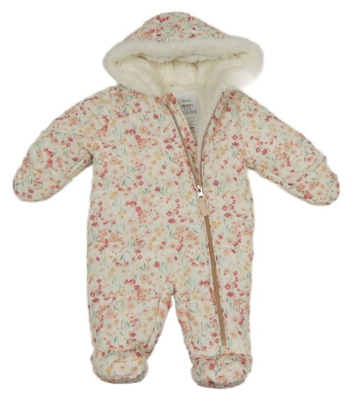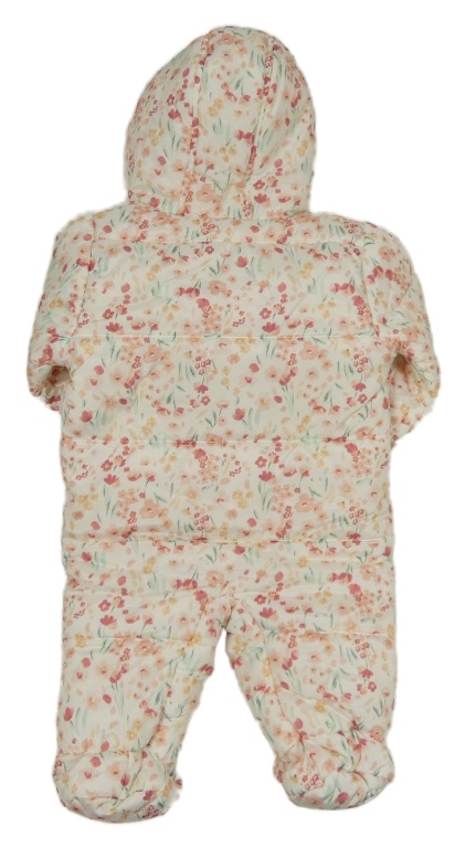 • Smetanová prošívaná šusťáková zimní kombinéza s kytičkami a kapucí s kožešinou Nutmeg