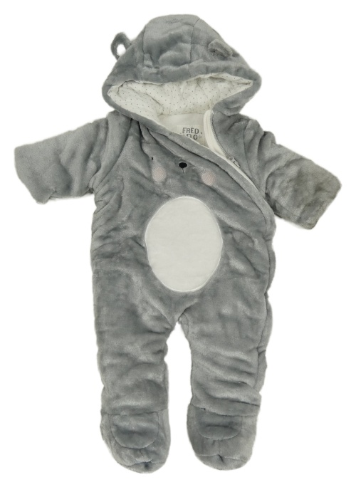 Šedá chlupatá zateplená kombinéza s kapucí F&F