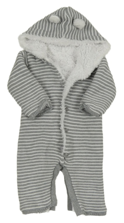 Šedo-bílá pruhovaná pletená zateplená kombinéza s kapucí Matalan
