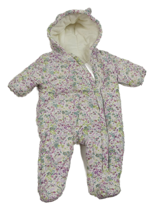 Bílá květovaná manšestrová zateplená kombinéza s kapucí Next