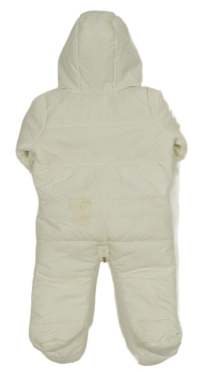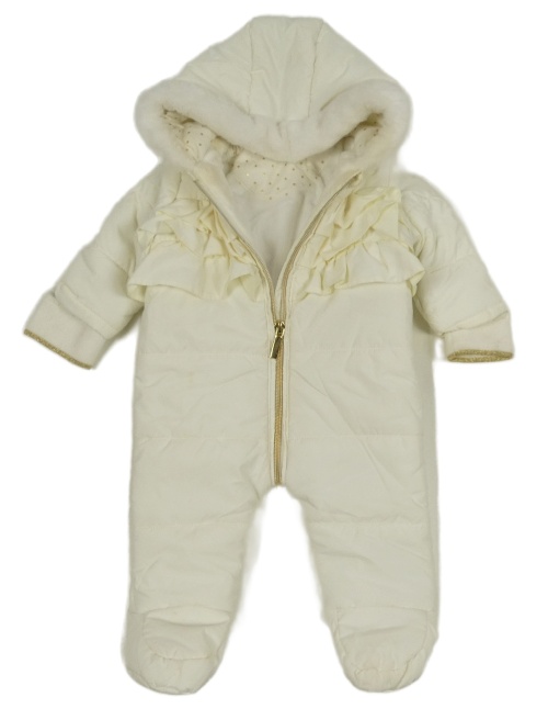 Bílá šusťáková zimní kombinéza s volánky a kapucí Matalan