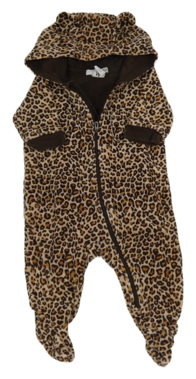 Hnědo-béžová sametová leopardí podšitá kombinéza s kapucí H&M