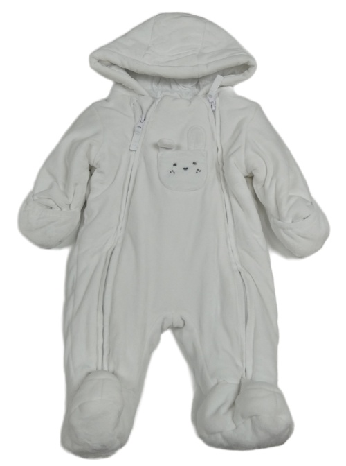 Bílá plyšová zateplená kombinéza se zajícem a kapucí M&S