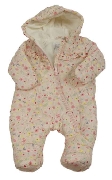 Růžová květovaná šusťáková zateplená kombinéza s kapucí Primark
